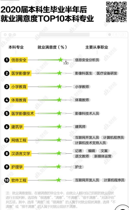 比如小學(xué)教育、漢語(yǔ)言文學(xué),都進(jìn)入了本科生畢業(yè)半年后職業(yè)滿意度排行榜前10名,分別排在第3和第8。