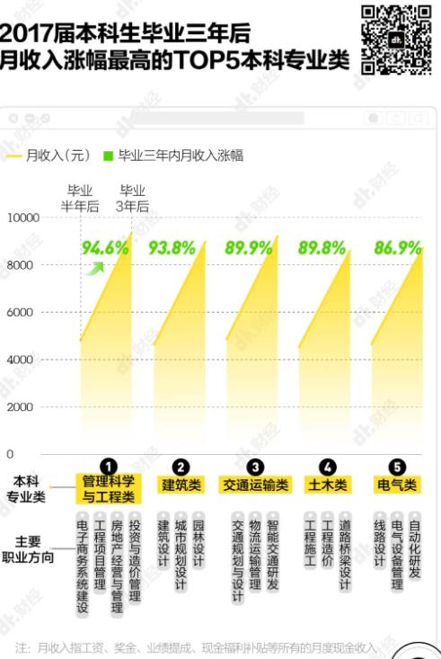還有建筑、交通運(yùn)輸、土木類專業(yè)等,它們雖然大多屬于傳統(tǒng)行業(yè),起薪低,普遍不如熱門的互聯(lián)網(wǎng)行業(yè)高,但好在收入增幅快、年終獎(jiǎng)多。